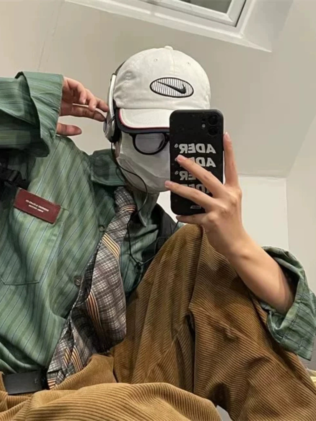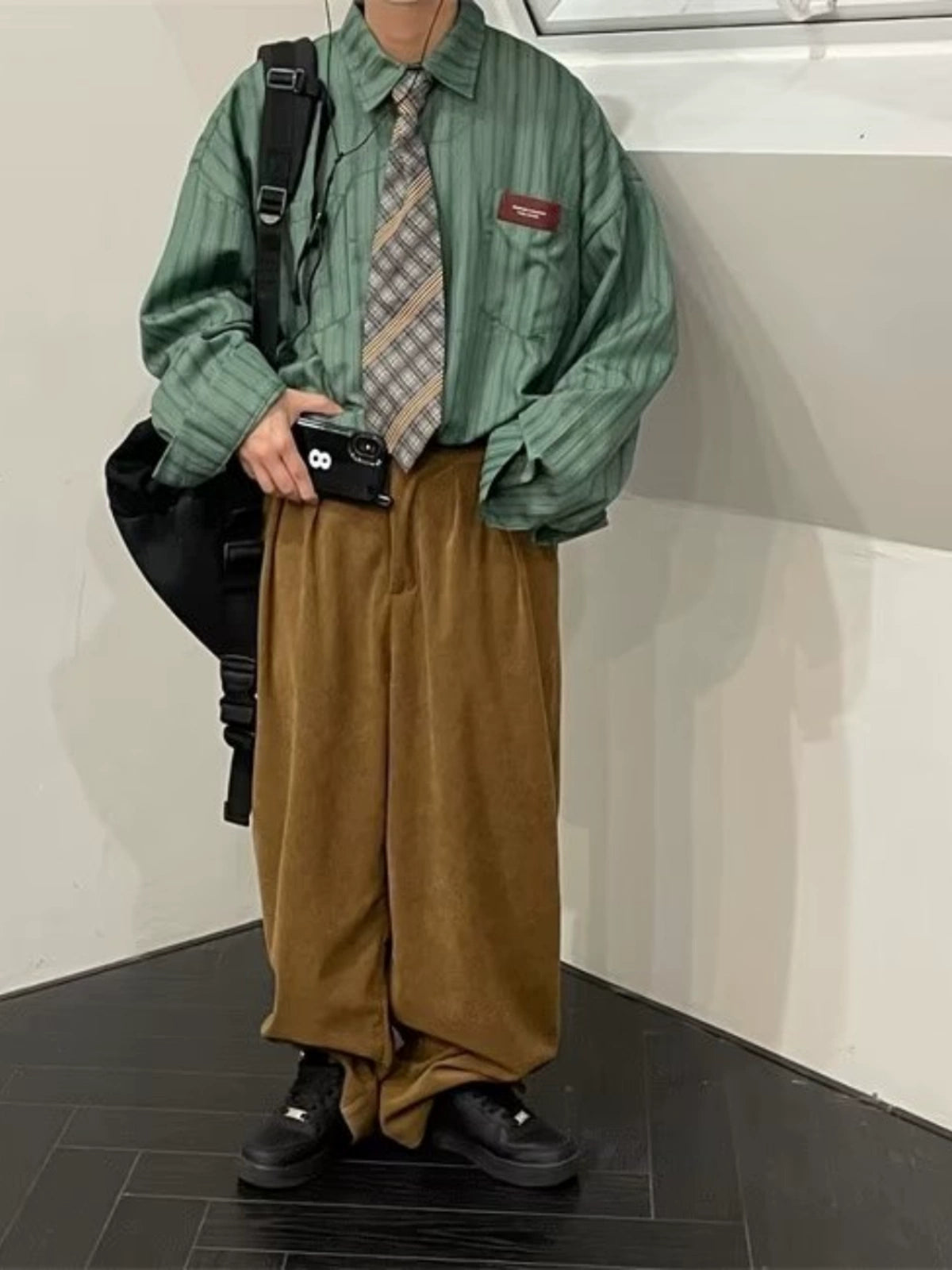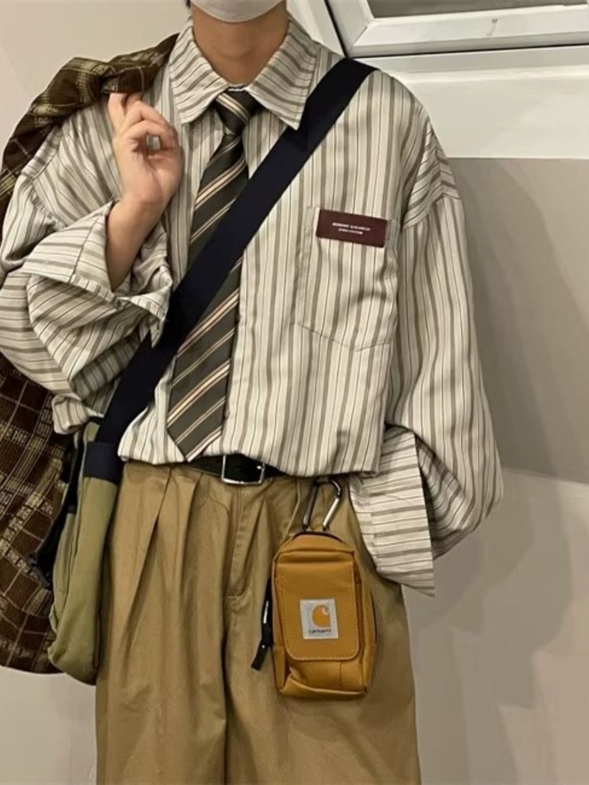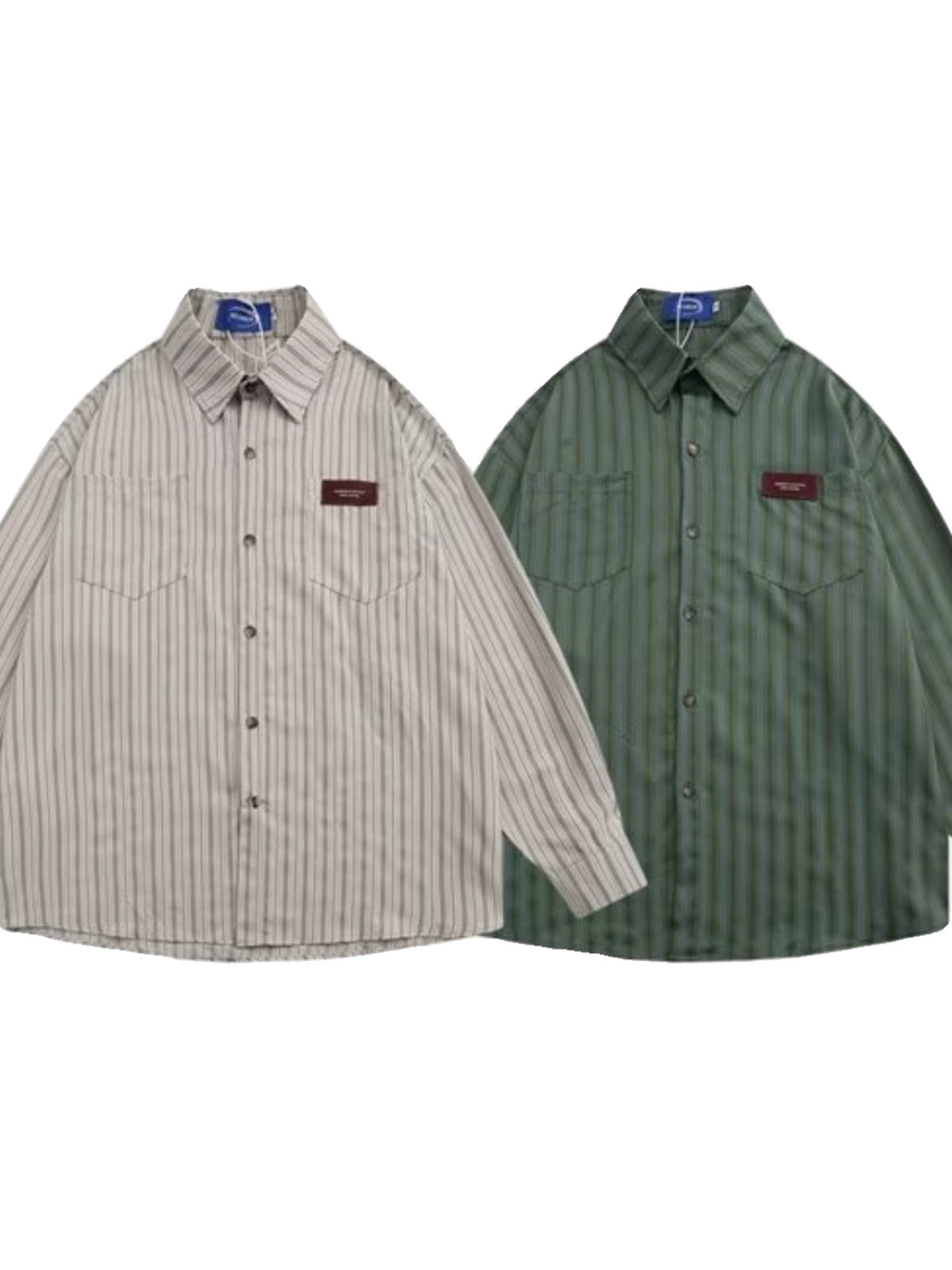 落ち着いたトーンのストライプフィット柄が印象的なルーズシャツ。