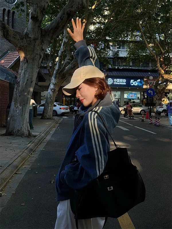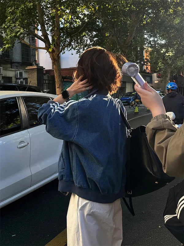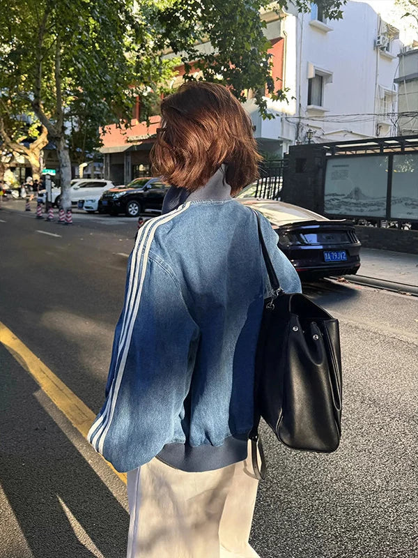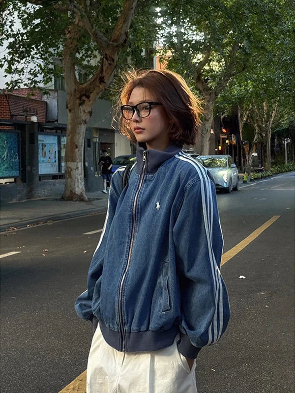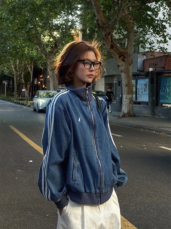 デニム素材で仕上げた、ストリートムード漂うトラックジャケット。