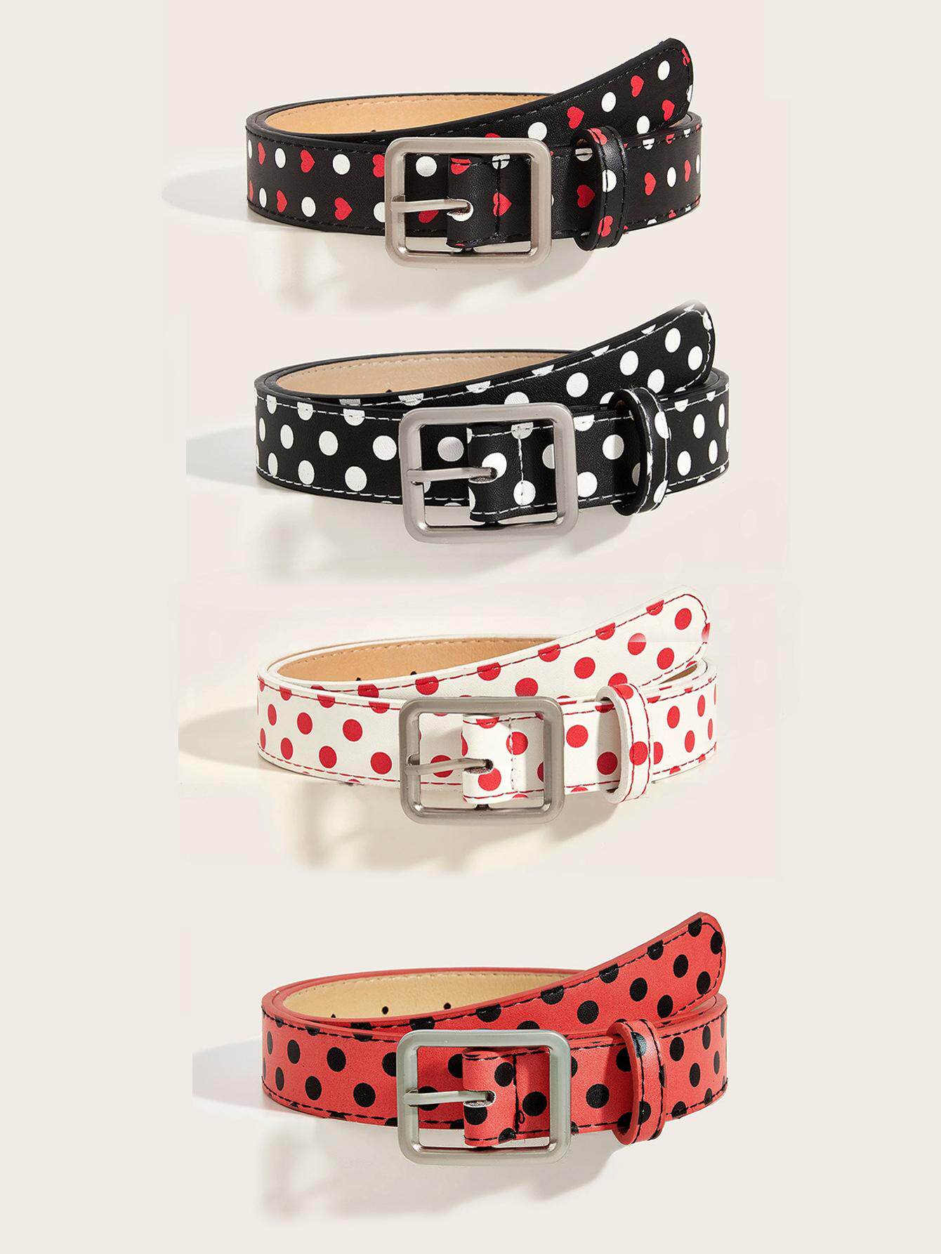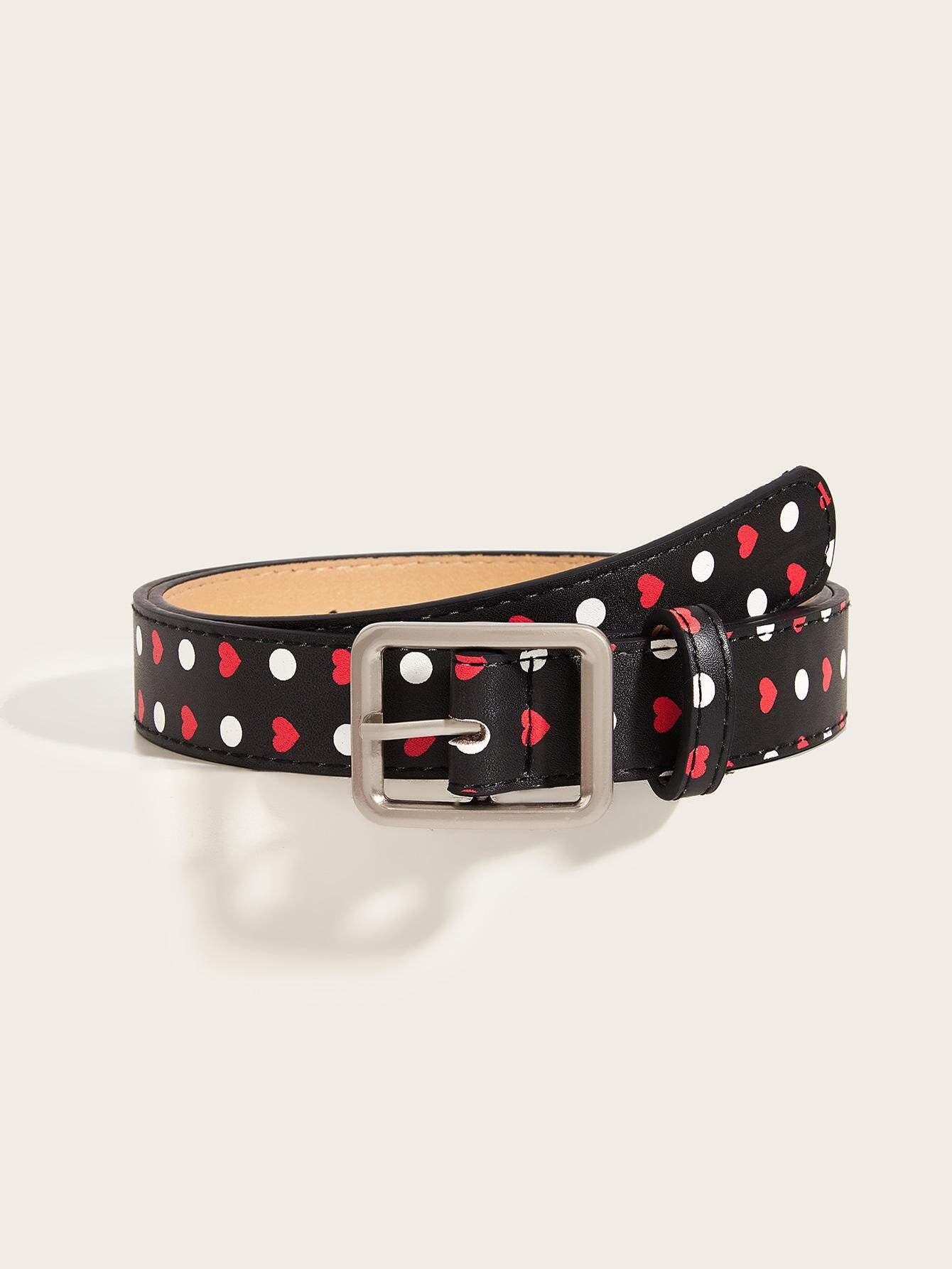ドット柄とハートデザインが目を引く、存在感のあるベルト。