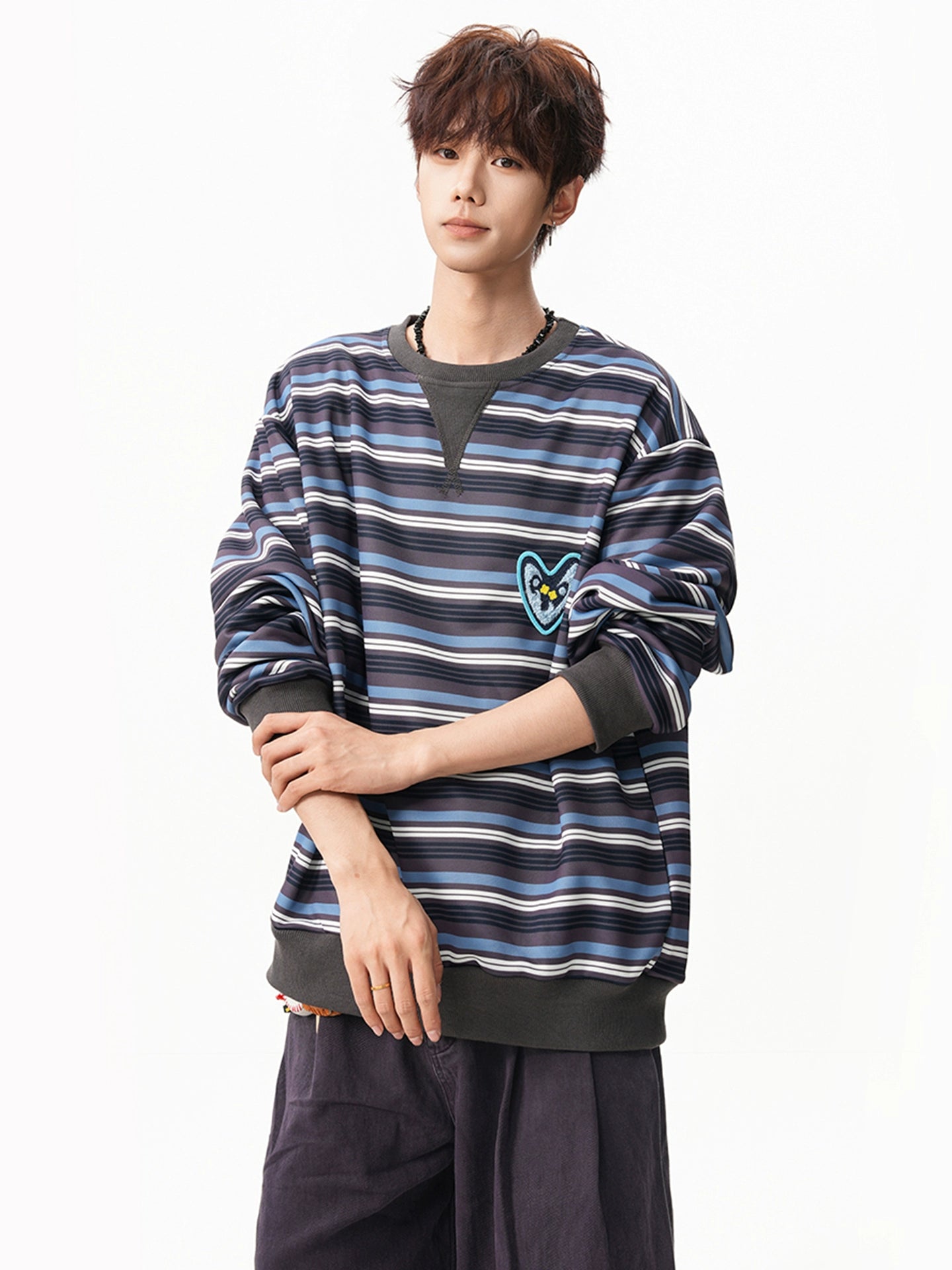 sd0062 ハートロゴボーダースウェット