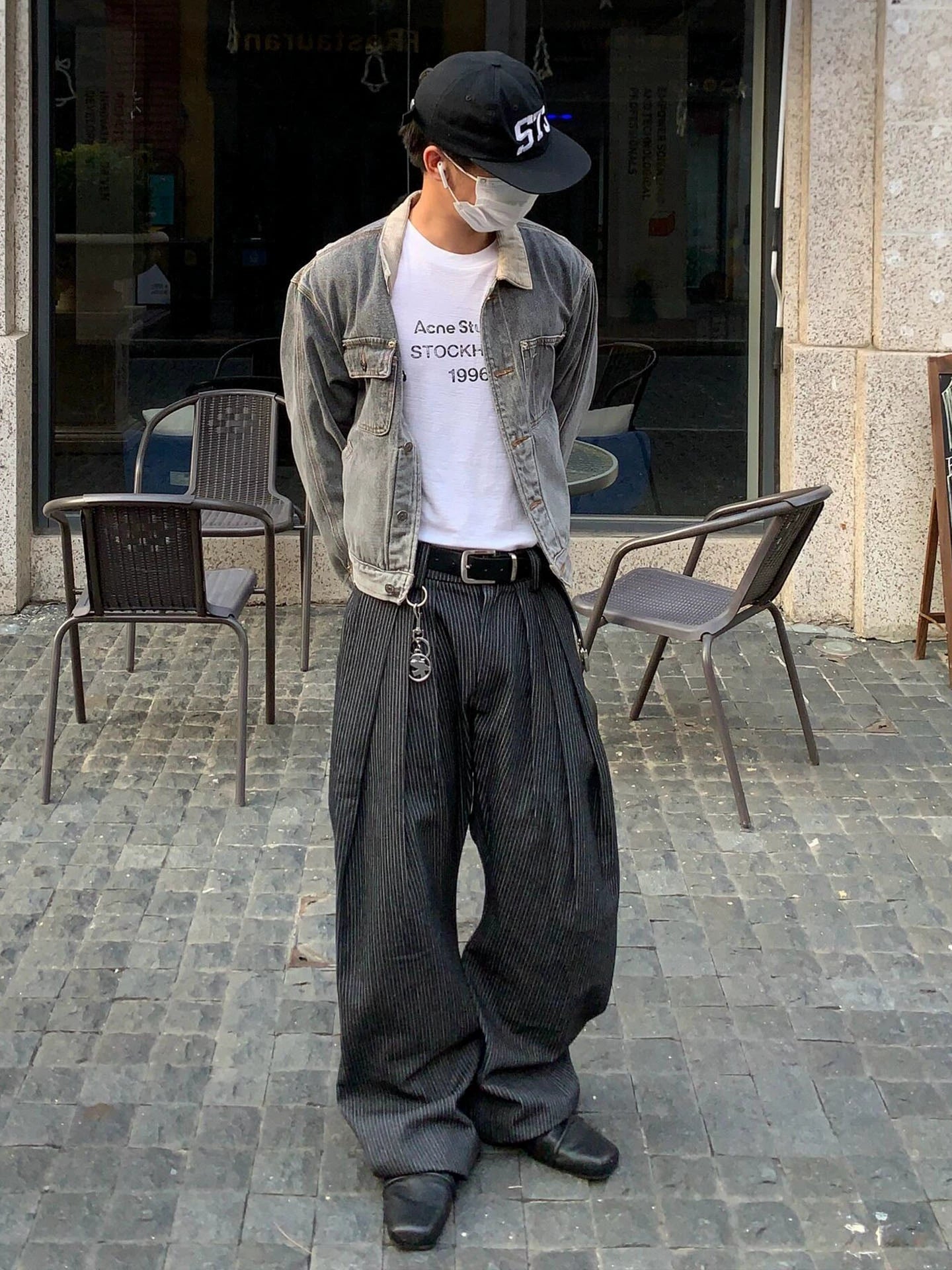 韓国ストリートで人気のルーズ×エレガントを融合したピンストライプスラックス。