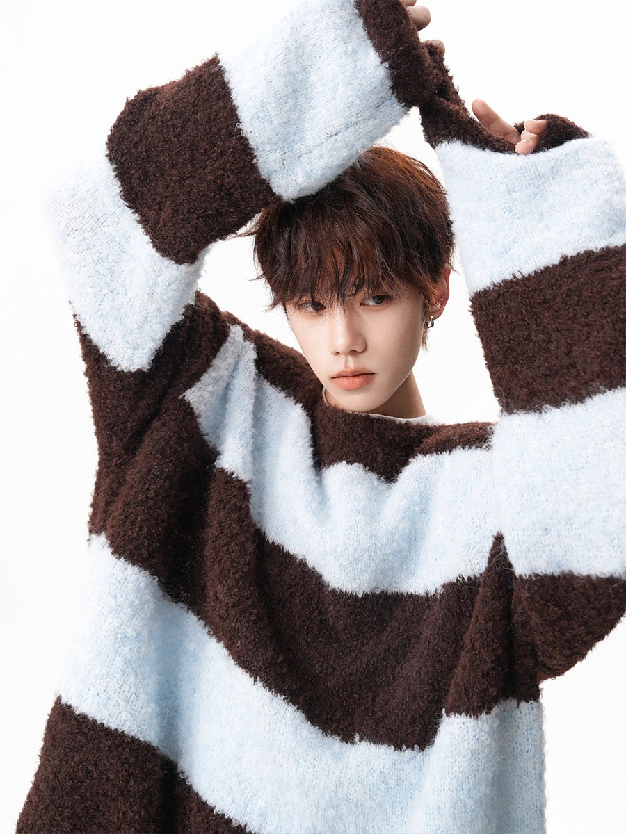 ふわふわとした質感と、大胆なボーダーデザインが存在感を放つ