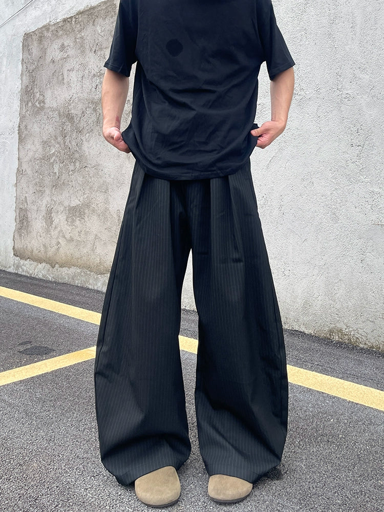ウエスト周りはすっきりと仕上げられ、裾にかけてゆったりと広がるボリュームがモードで仕上げられた雰囲気を演出します。