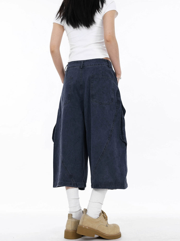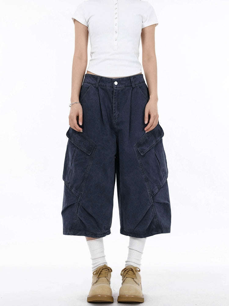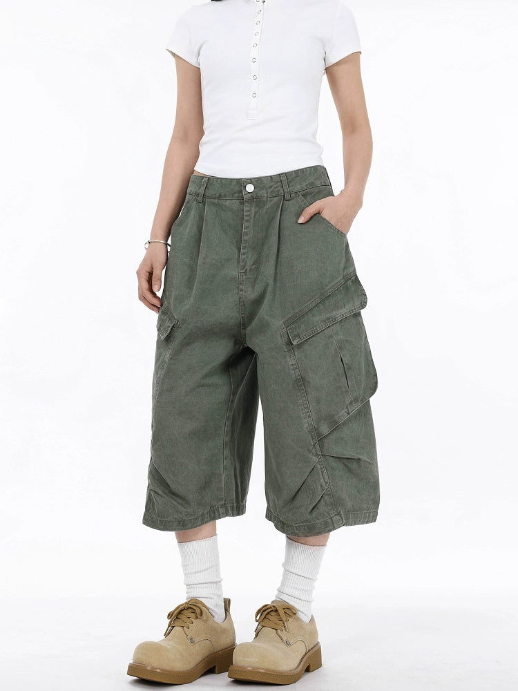 ヴィンテージライクなウォッシュ加工が魅力のカーゴワイドショーツ。